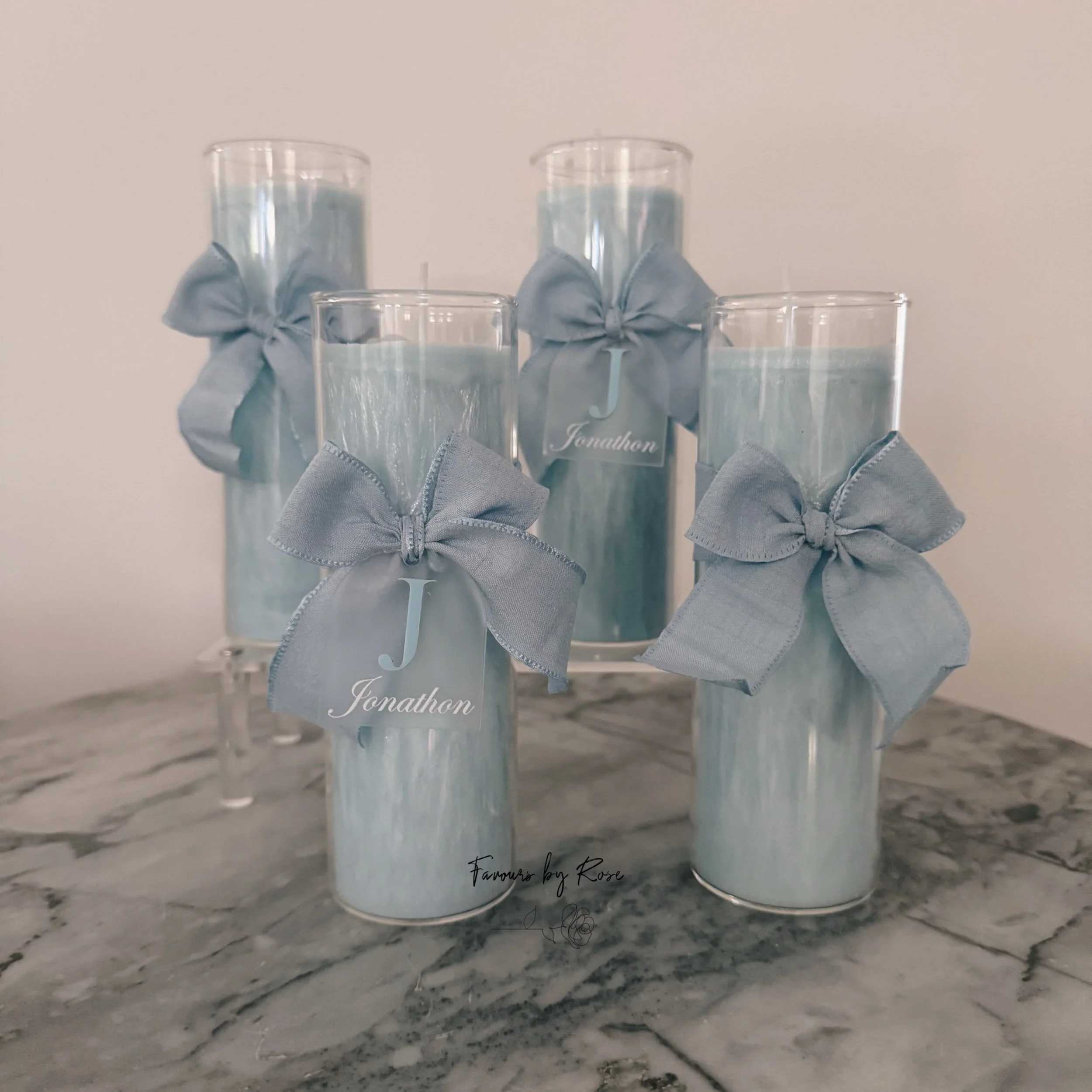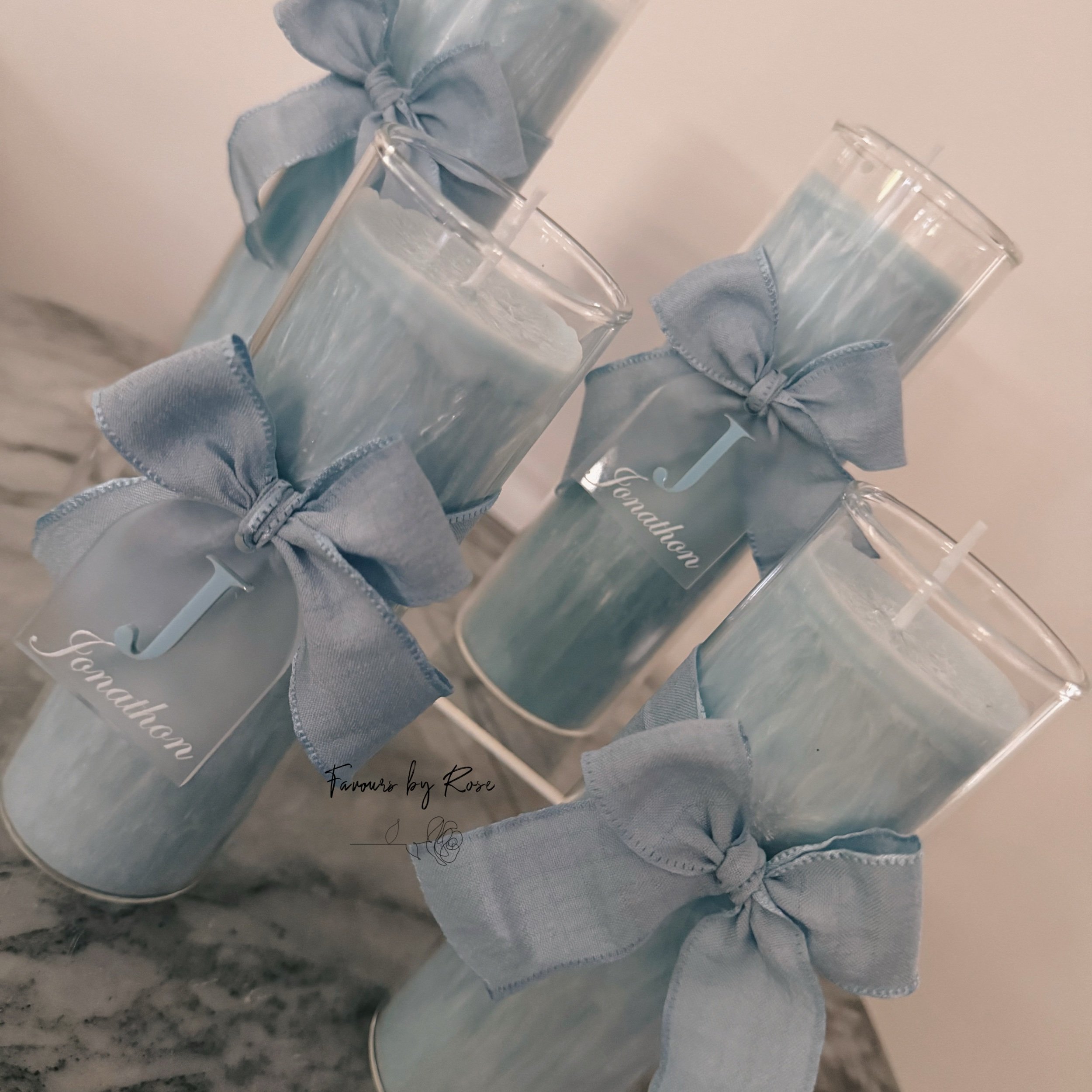 Please specify in comments, candle colour, ribbon colour and name for the acrylic tags.