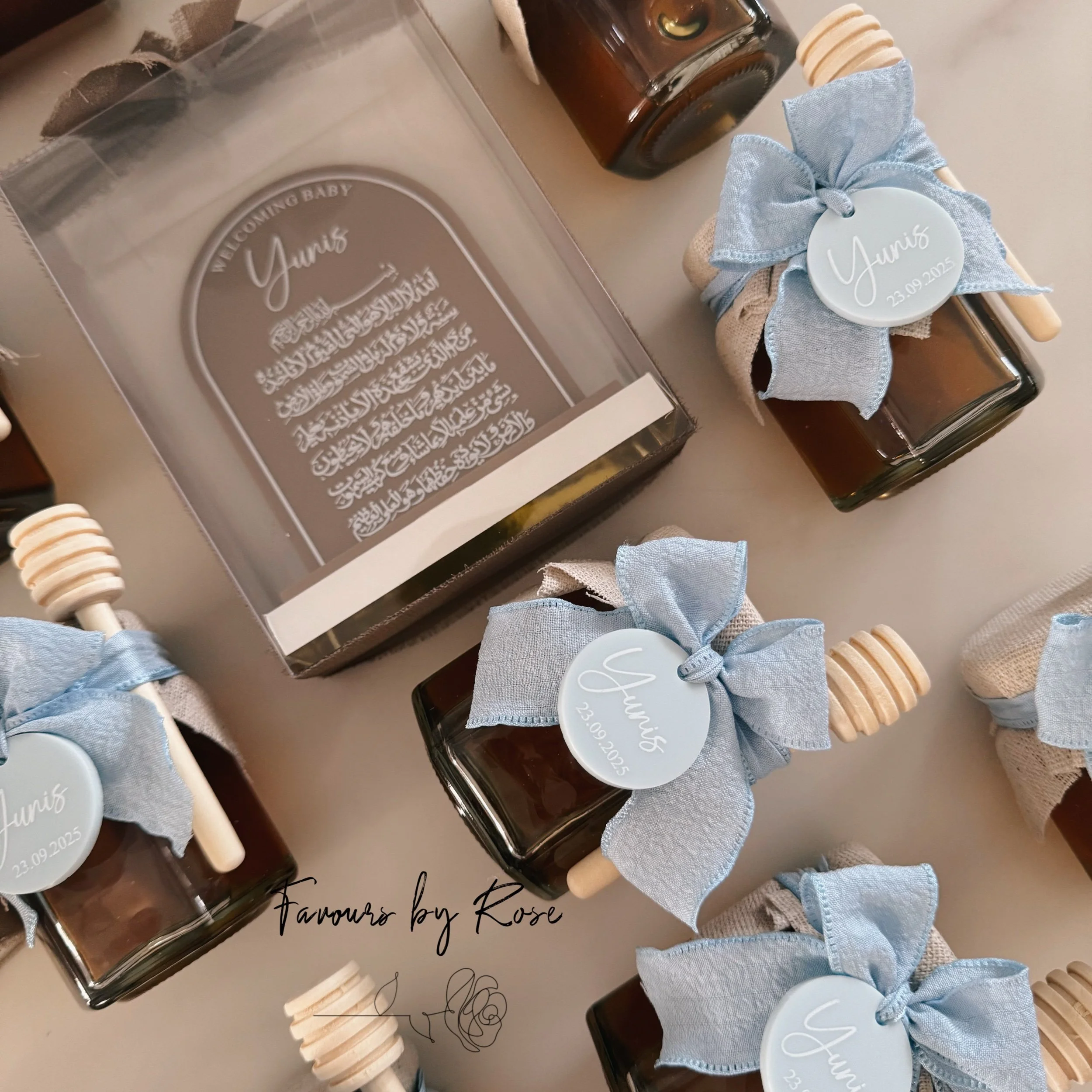 We promise to provide high quality items, every time… Categories: Select a Category All Occasions Newborn Favours Christening & Holy Communion Wedding Favours Islamic Favours Gifts and Decor Packages Shop Now All Occasions | Newborn Favours | Christening & Holy Communion | Wedding Favours | Islamic Favours | Gifts and Decor | Packages | New Born Favours Package Lux Edition New Born Favours Package Floral Arrangement Customisable Gift Tray Foam Cube Name Layered Acrylic Name Sign Layered Acrylic Name Sign (Two Names) Acrylic Name Sign Floral Letters Last Supper Praying Hands St Charbel Candles Soap Favours Lux Glass Favour Bottles Large Naked Chocolate Bars Naked Chocolate Bars Mini Naked Chocolate Bars Square Name Candle Hour Glass Candle Bear Candle Large Hand Poured Candle Good things come in 3 Lux Edition Good Things Come in 3 Gift Box Heart Cookies Teddy Bear Sugar Cookies Abstract Cookies Italian Shortbread Favours Geo Heart Favours Meringue & Raffaello Cylinders Meringue & Raffaello Boxes Lollipop Favours Toblerone Bar Favours Jelly Bean Favours Diffuser Favours Lux Room Spray Favours Lux Glass Olive Oil Bottles Decanter Favour Honey Jar with dipper (80ml) Arabic Prayer Favour Personalised Prayer Beads Lebanese Coffee Favours Turkish Coffee Favours Turkish Kolonya Spray Crochet Cardigan Chocolates Umrah Mubarak Chocolates Acrylic Initial Favours Vintage Inspired Frame Chocolates Branch and Flower Chocolates Preserved Flower Chocolates Personalised Acrylic Chocolates Personalised Foil Chocolates Flower Chocolates Pretty Bow Chocolates with Charm Personalised Printed Chocolates Traditional Almond Boxes Baby Rattle Favour Tube Favours Almond Bags Mini Baby Bottles Sugar Almond Add On Ring Tray Package (Gold) Sold Out Ring Tray Package (Silver) Glass Olive Oil Tubes Duo Favour Box Quad Favour Box Mini Customised Glasshouse Candles (60g) Mini Bubble Candle Favour Hand Poured Candle 2.0 Scented Candle Favours Hand Poured Geo Candle Pillar Candle Favour Ayatul Kursi Plaque Kateb El Kitab Plaque ZAMZAM Gift Box Lux Glass ZAMZAM Bottles ZAMZAM Water Bottles Sugar Almonds with Tesbih and Mini Quran. Religious Islamic Journal The Holy Quran (13x18cm) Quran with Tesbih and Tag Velvet Quran Gift Set Sold Out Padded Prayer Mats Quran Verse Jar Unity Candle Set Catholic Child's First Bible (Personalised) Christening Candle with Satin Bow Trinket Box Child’s Personalised Hanger Small Acrylic Prayer Saint Tea Light Candle Favours Lux Glass Holy Water Bottles Full Size Pearl Rosary Favours Sugar Almonds with Rosary Bracelet Crystal Cross with Tag Wooden Rosary Box with Sugar Almonds 4 Design Chocolate Package Personalised Tic Tac's Mini Personalised Nutella Jars Sold Out Personalised Acrylic Tags Baby Gift Pack Turkish Bath Set Personalised Money Box Baby Milestone Discs 500g Sugar Coated Almonds FavoursByRose eGift Card Custom Cookie Stamp Rush My Order Eid Money Holders